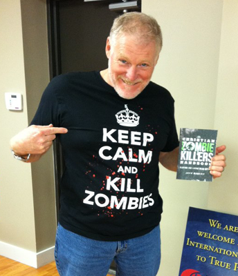 That’s me, holding the bestseller: Christian Zombie Killer Handbook, by my friend, Jeff Kinley